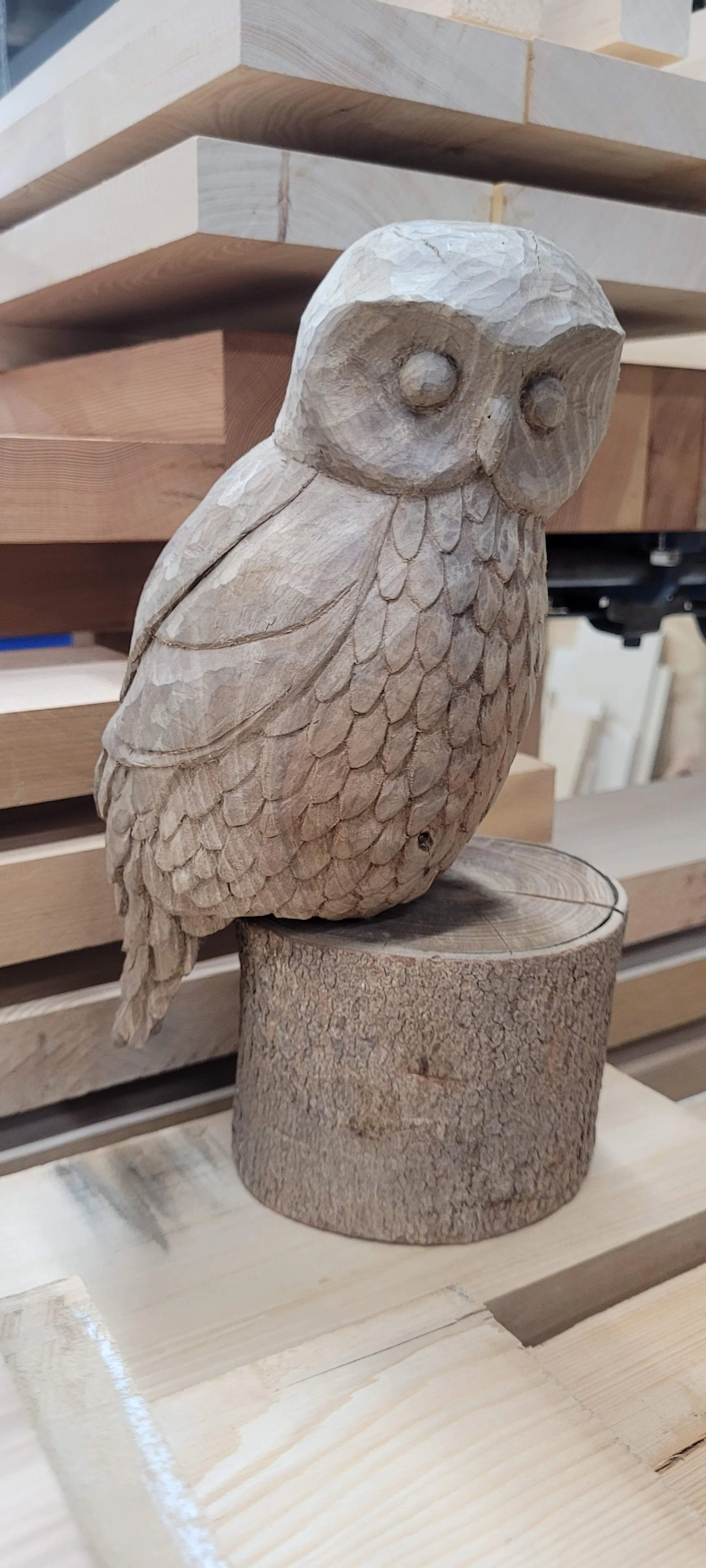 Previous classes have included carving acanthus leaves, ornamental relief designs, birds, owls, and animals, as well as chip-carved patterns on bowls and sculptural forms. Wanda’s own artistic practice focuses on figurative and portrait sculpture, and she’s happy to share her expertise with anyone interested in exploring this area.